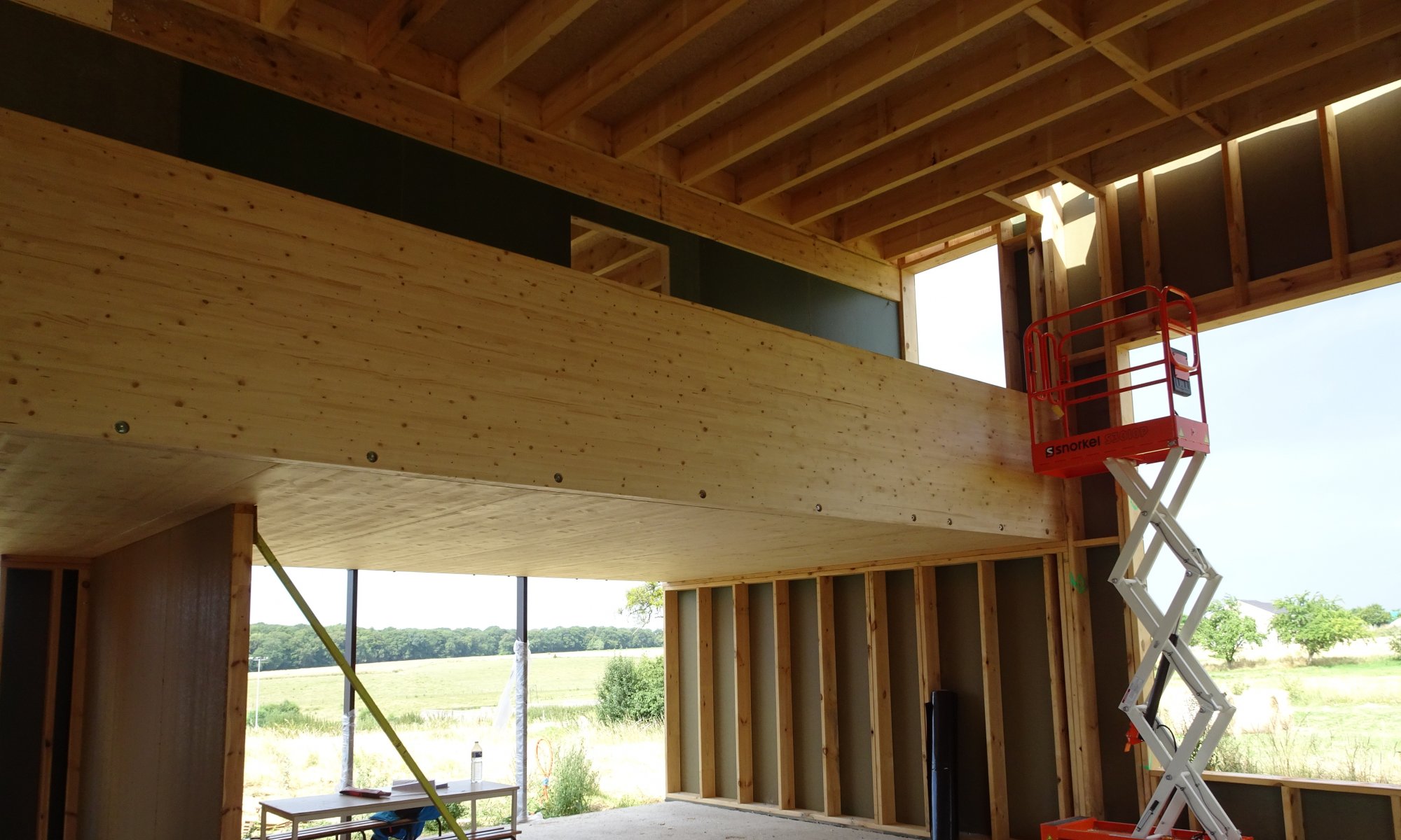 Le rez-de-chaussée abrite l'espace de séjour-cuisine aux proportions généreuses, recevant de la lumière depuis les quatre orientations solaires grâce à son développement en double hauteur. La suite parentale avec dressing et salle d'eau donne sur la terrasse est, en lien avec le sauna. L'escalier accompagne la double hauteur de son ascension et donne accès à une coursive distributive ouverte sur le séjour. L'étage constitue le monde des enfants, associant à leurs chambres une pièce de travail et un espace mezzanine de détente et de jeu.