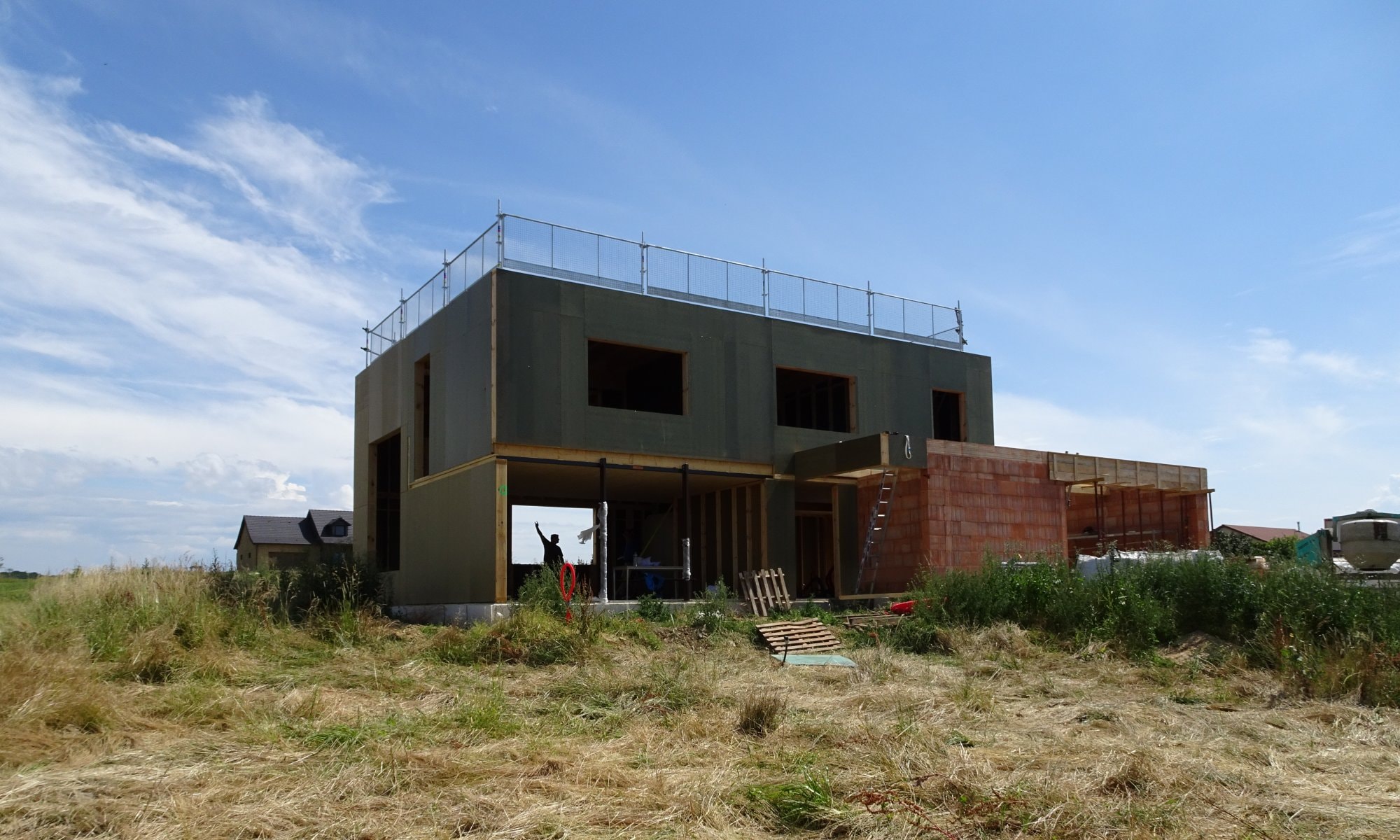 Cette maison aux performances passives est implantée sur un ancien terrain agricole à la sortie du village de Remeling. Sa construction met en œuvre une ossature bois, associant des matériaux naturels pour assurer son isolation (laine de bois, ouate de cellulose), ainsi qu'une toiture terrasse végétalisée.